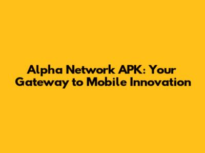 Alpha Network APK: Your Gateway To Mobile Innovation