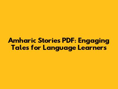 Amharic Stories PDF: Engaging Tales For Language Learners