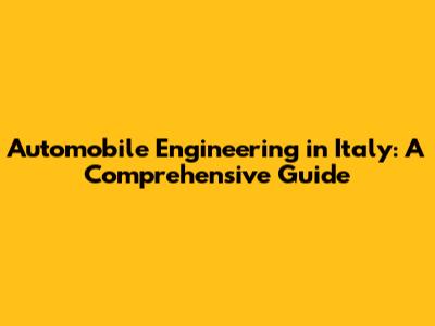 Automobile Engineering In Italy: A Comprehensive Guide