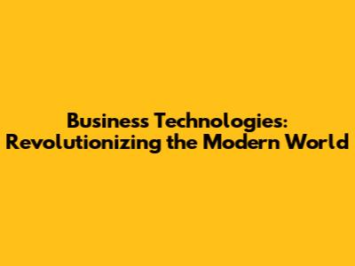 Business Technologies: Revolutionizing The Modern World