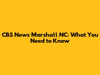 CBS News Marshall NC: What You Need To Know