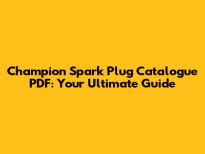 Navigating the Champion Spark Plug Catalogue PDF
