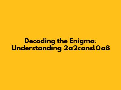 Decoding 2a2cansl0a8: Understanding The Enigma