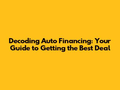 Decoding Auto Financing: Your Guide To Getting The Best Deal