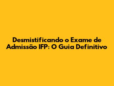 Desmistificando O Exame De Admissão IFP: O Guia Definitivo