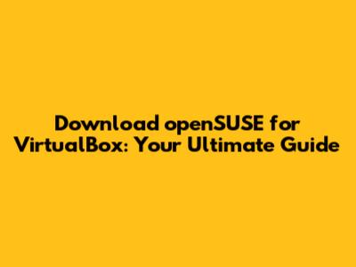 Download OpenSUSE For VirtualBox: A Complete Guide