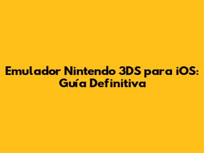 Emulador Nintendo 3DS Para IOS: Guía Completa Y Actualizada