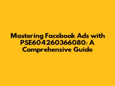 Facebook Ads: Mastering PSE604260366080 For Success