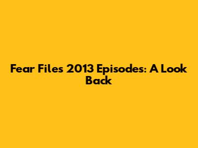 Fear Files 2013 Episodes: A Look Back