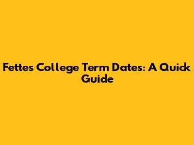 Fettes College Term Dates: A Quick Guide