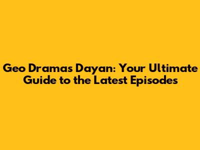 5. How can I stay updated on Dayan news? Follow Geo Entertainment on social media and subscribe to their official channels to stay updated on the latest news and episode releases.
