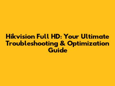 Hikvision Full HD: Troubleshooting & Optimization Guide