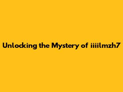 Iiiilmzh7: Unlocking The Mystery Behind The Code