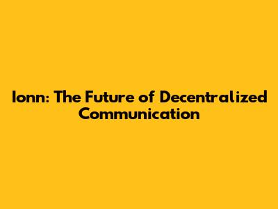 Ionn: The Future Of Decentralized Communication