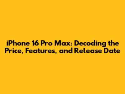 IPhone 16 Pro Max: Price, Features, And Release Date
