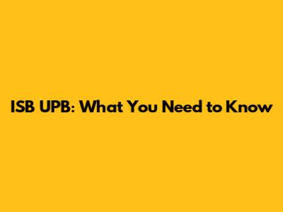 ISB UPB: What You Need To Know