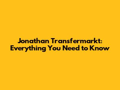 Jonathan Transfermarkt: Everything You Need To Know