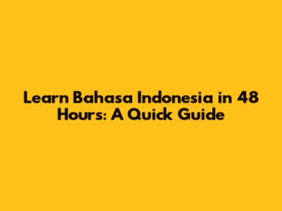Learn Bahasa Indonesia In 48 Hours: A Quick Guide