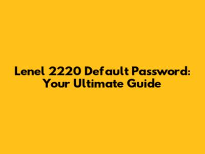 Lenel 2220 Default Password: Everything You Need To Know
