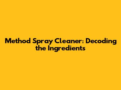 Method Spray Cleaner: Decoding The Ingredients