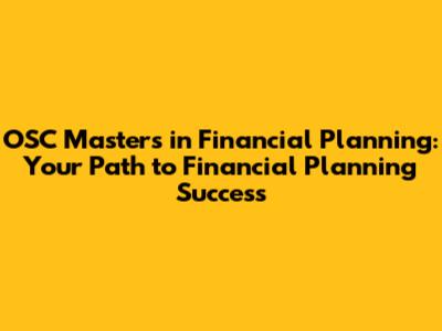 OSC Masters: Your Path To Financial Planning Success