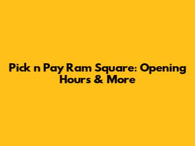 Pick N Pay Ram Square: Opening Hours & More