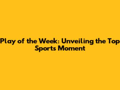 Play Of The Week: Unveiling The Top Sports Moment
