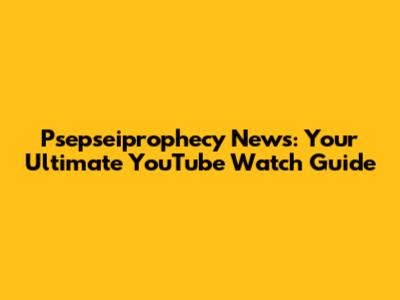 Psepseiprophecy News: Your Ultimate YouTube Watch Guide