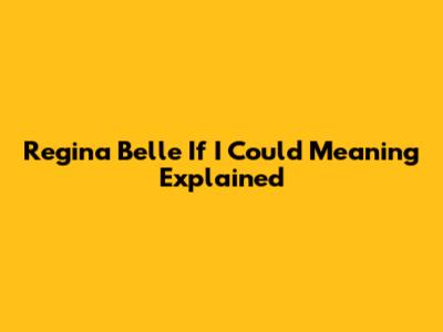 Regina Belle If I Could Meaning Explained