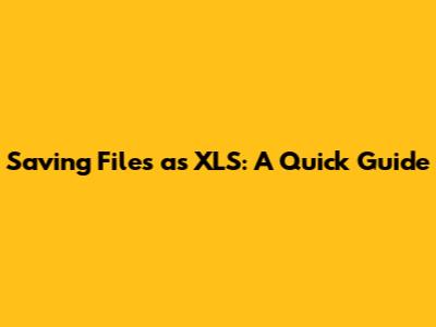 Saving Files As XLS: A Quick Guide