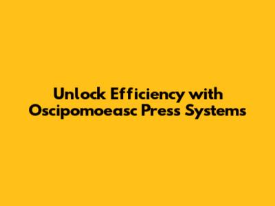 Unlock Efficiency With Oscipomoeasc Press Systems