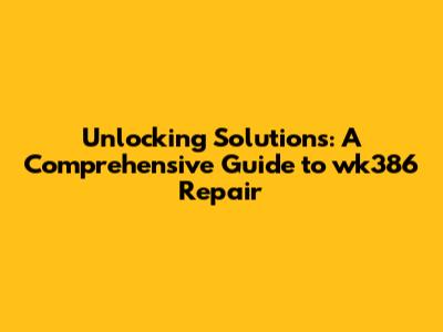 Unlocking Solutions: A Comprehensive Guide To Wk386 Repair