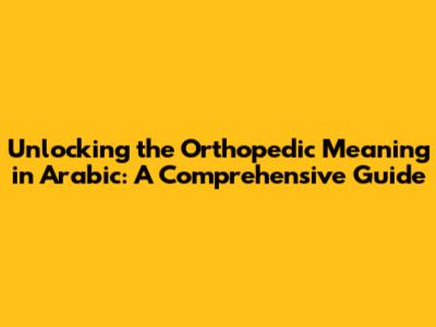 Unlocking The Orthopedic Meaning In Arabic: A Comprehensive Guide