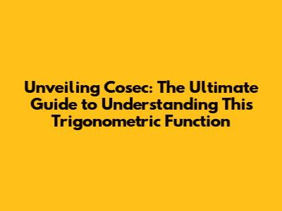 Unveiling Cosec: The Ultimate Guide To Understanding This Trigonometric Function
