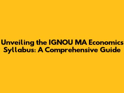 Unveiling The IGNOU MA Economics Syllabus: A Comprehensive Guide