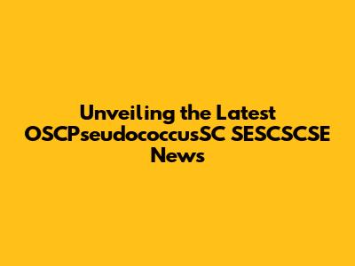Unveiling The Latest OSCPseudococcusSC SESCSCSE News