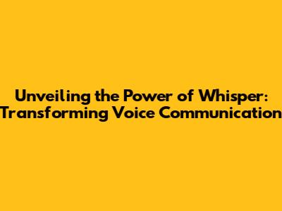 Unveiling The Power Of Whisper: Transforming Voice Communication