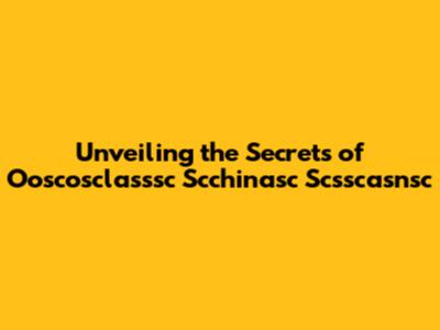 Unveiling The Secrets Of Ooscosclasssc Scchinasc Scsscasnsc