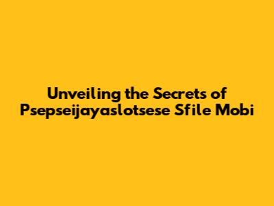 Unveiling The Secrets Of Psepseijayaslotsese Sfile Mobi