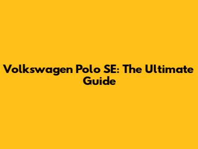Volkswagen Polo SE: The Ultimate Guide